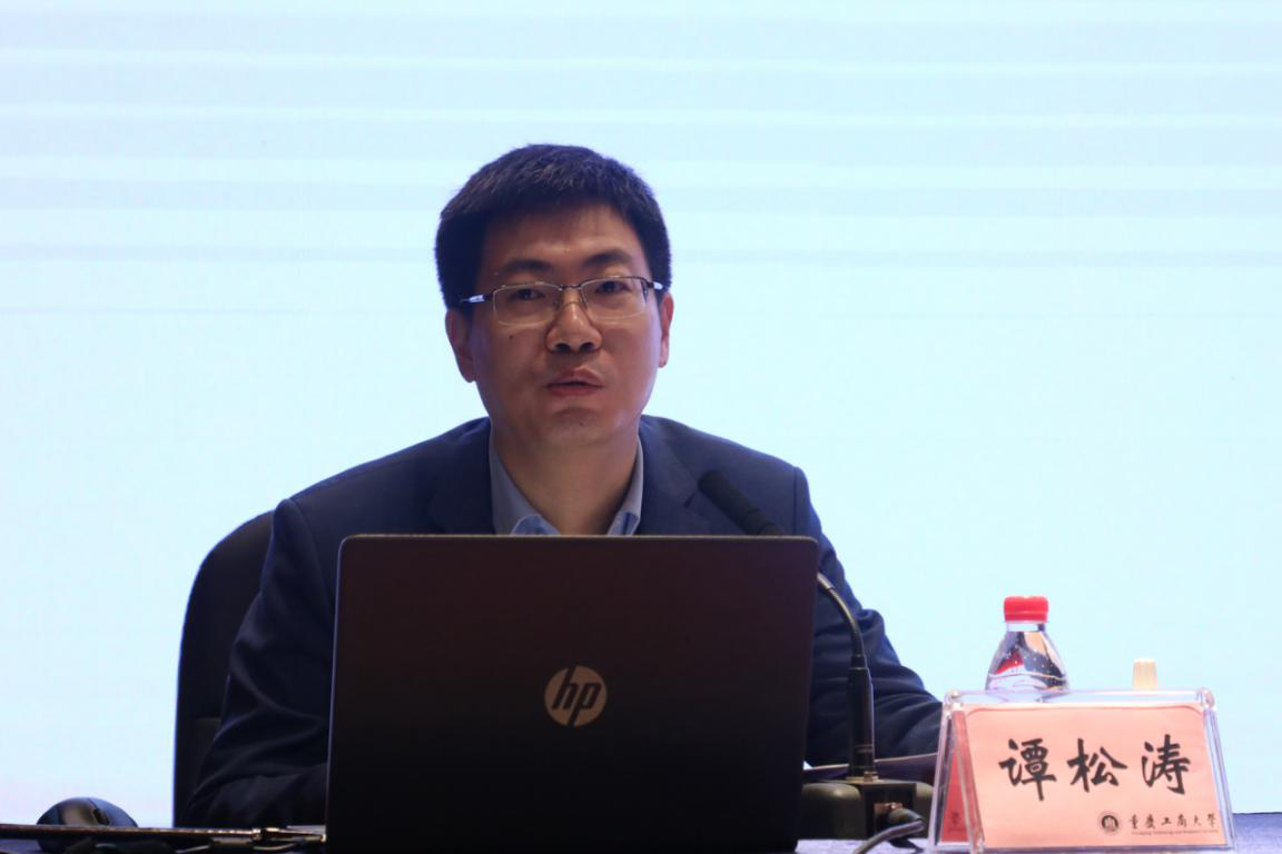 校长助理谭松涛传达《成渝地区双城经济圈建设规划纲要》相关精神。他从成渝地区双城经济圈的目标定位、成渝地区发展需要解决的几个问题出发,全面深入地向与会人员解读了纲要的具体内容。谭松涛指出,《纲要》描绘了将成渝地区双城经济圈打造成带动全国高质量发展的重要增长极和新的动力源的宏伟蓝图,是成渝地区双城经济圈建设的纲领性文件。作为重庆市的一所财经特色的高校,我们要以《纲要》为指南,深入研究成渝地区双城经济圈建设的系列理论和实践问题,为助推地方经济社会发展、全面建设社会主义现代化国家作出应有的贡献。