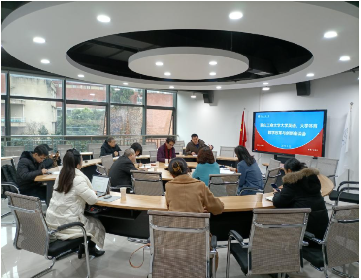 1月25日上午,教务处处长骆东奇、副处长宋瑛与外国语学院、体育学院党政班子成员、系部教师共同就我校在“十四五”人才培养中大学英语、大学体育的教学改革与创新发展等进行座谈研讨。