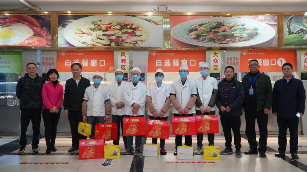 2月12日上午10时,农历大年初一,学校党委书记李志雄带领党政办公室、党委宣传部、党委保卫部、后勤处等相关部门负责人及值班干部,到保卫处、食堂、学生公寓、行政办公楼看望慰问了各部门在寒假期间坚守工作岗位的值班人员。