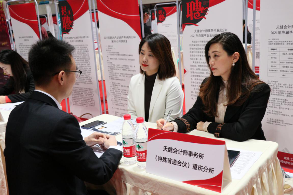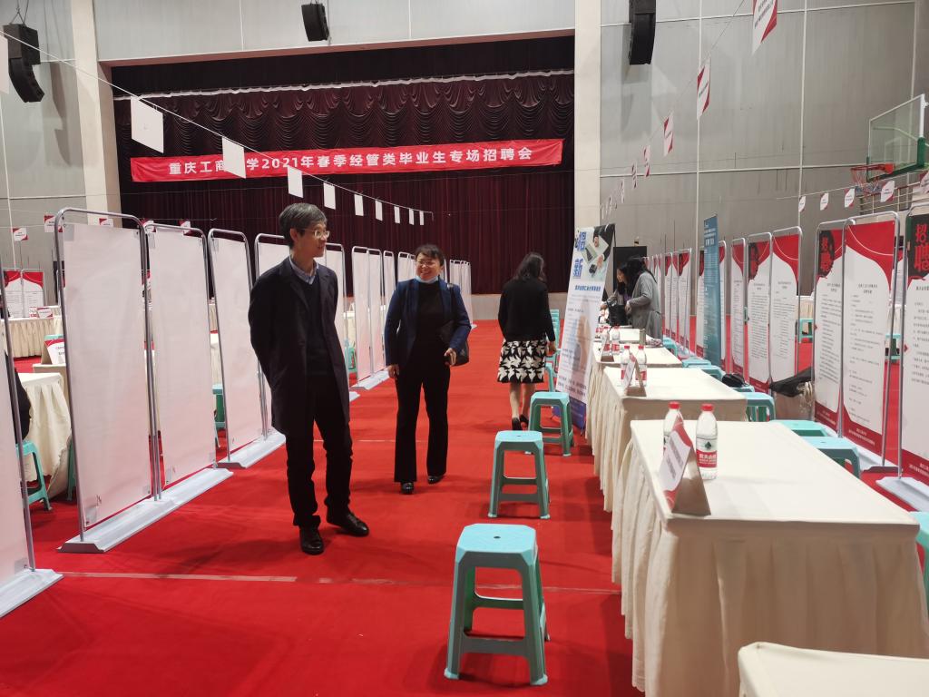 为进一步推动我校毕业生就业工作,实现经管类毕业生高质量就业,由会计学院、工商管理学院、管理科学与工程学院联合承办的米兰网站2021届经管类毕业生专场招聘会于4月16日在体艺馆顺利举行。校长孙芳城、重庆市注册会计师协会副秘书长、资产评估协会秘书长王琳、招生就业处及学院相关负责人、专任教师、毕业班辅导员到现场指导工作。