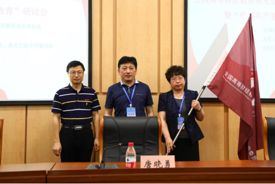 闭幕式第一项,举行了全国高等财经教育研究会思想政治教育协作委员会会旗交接仪式,山东工商学院将作为下一次会议承办单位接受会旗。