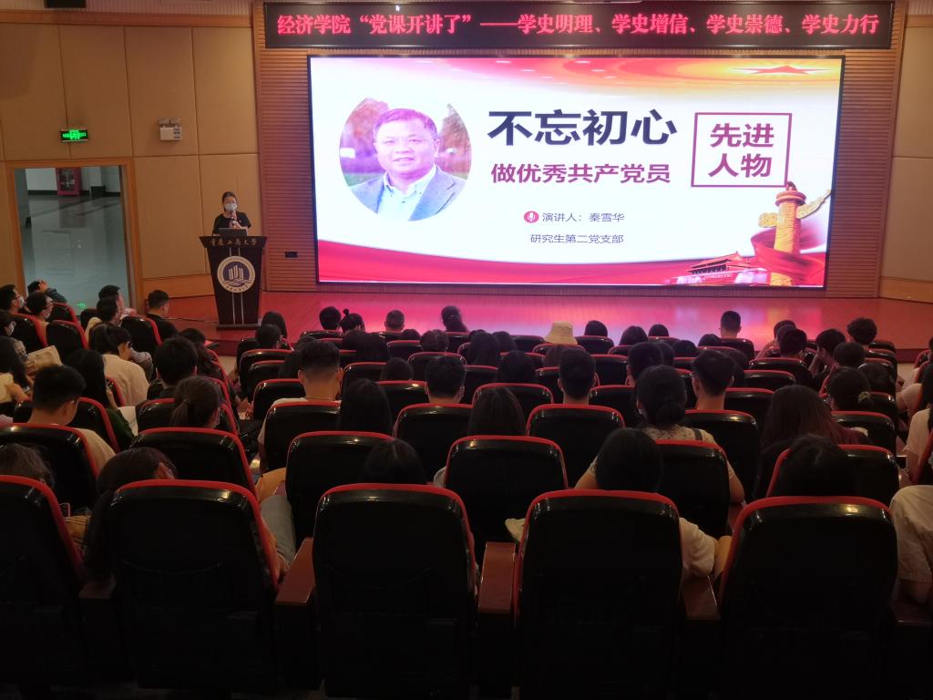 近期,经济学院党委党史学习教育系列活动“党课开讲啦”之师生共讲百年奋斗史在博智楼7200报告厅举办,经济学院党员和入党积极分子共270多人参加了此次活动。活动由专职组织员雷菁主持。