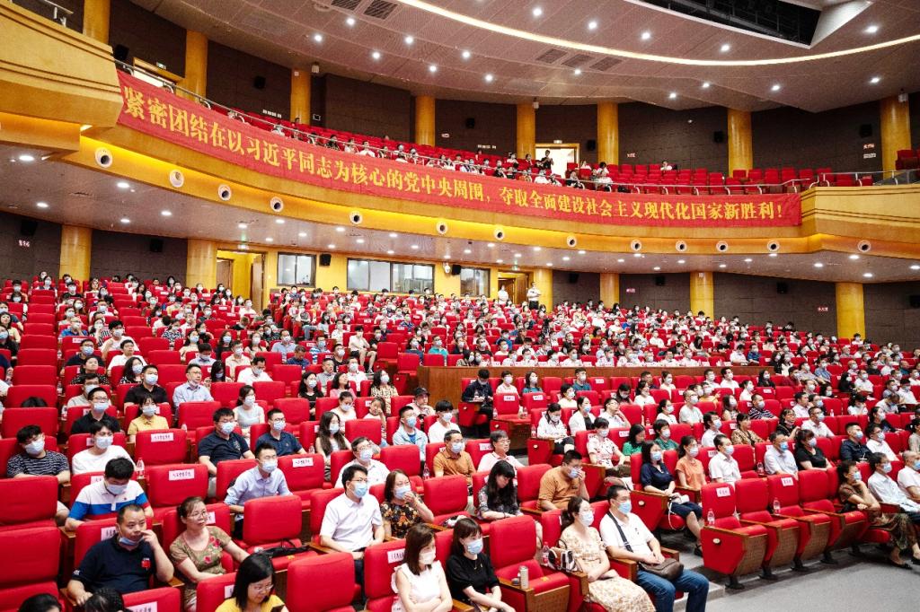 我校在三个校(片)区设立集中观看点,组织全校师生观看庆祝大会实况直播。全体在家校领导,校党委常委,全体中层干部、专职组织员,党员代表,民主党派教师代表,教师代表,学生代表,离退休老同志代表在南岸校区剧场、江北校区宏智楼B509学术报告厅和兰花湖片区学术报告厅集中观看。