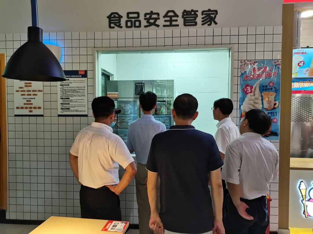 7月5日下午,校长孙芳城、副校长陈兴述深入学校各食堂,对食品安全、食堂管理等工作进行检查,资产管理处、后勤处等部门负责人陪同检查。