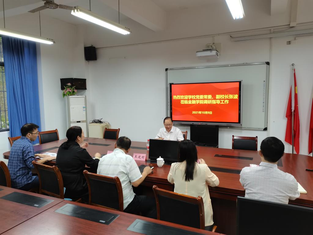 在金融学院调研时,金融学院班子成员分别从党建、学科建设、学生工作、教学管理和科研等方面作了详细汇报。