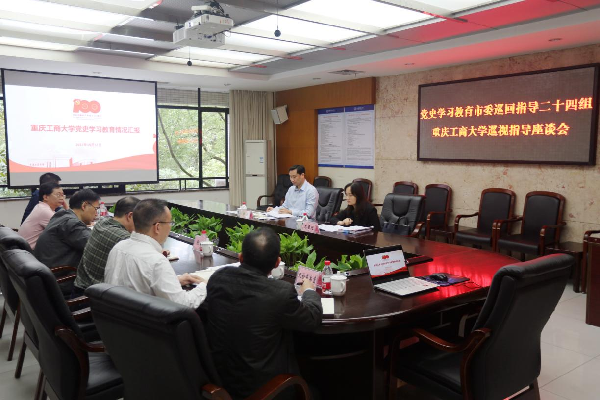 10月12日下午,党史学习教育市委巡回指导二十四组组长谯建到我校巡视指导工作,并召开座谈会。校党委书记李志雄、纪委书记周航、党委常委张波出席会议。
