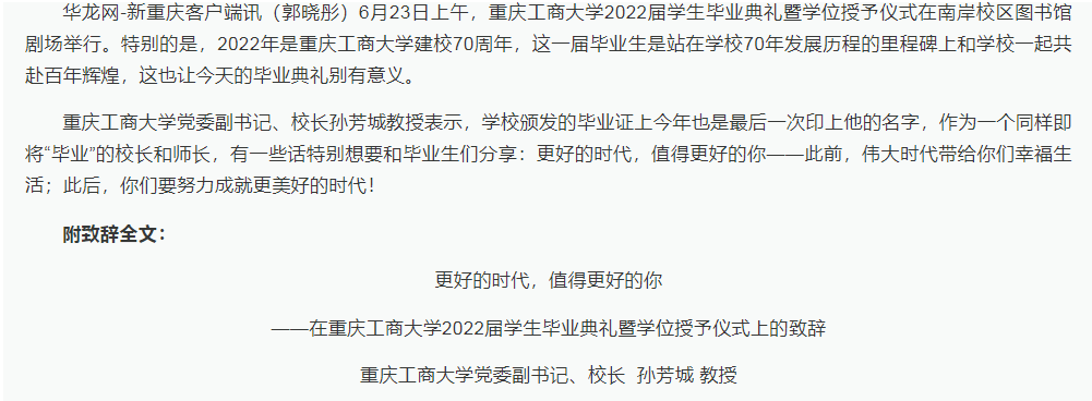 华龙网报道我校2022届学生毕业典礼暨学位授予仪式