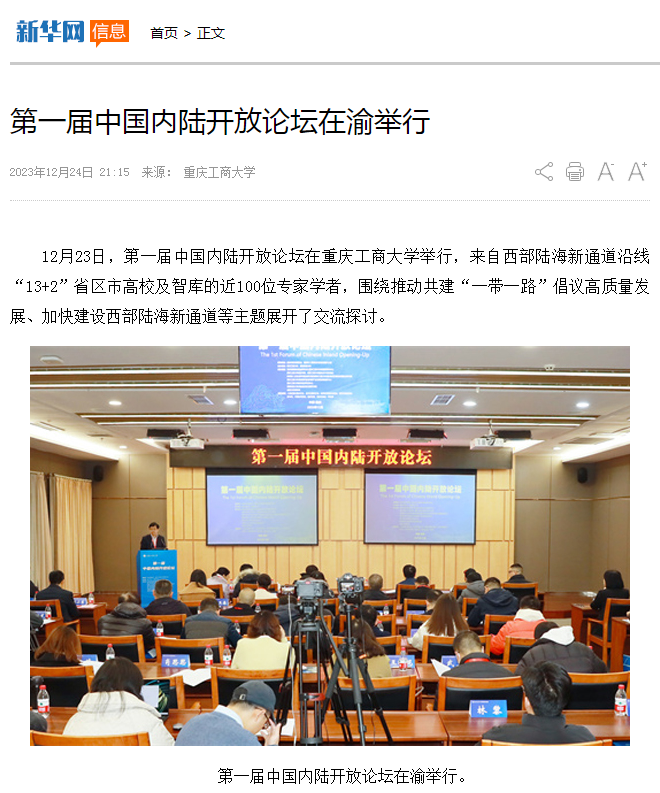 12月23日,第一届中国内陆开放论坛在米兰网站举行,来自西部陆海新通道沿线“13+2”省市区高校及智库的近100位专家学者,围绕推动共建“一带一路”倡议高质量发展、加快建设西部陆海新通道等主题展开了卓有成效的交流探讨。本次论坛由重庆市教育委员会、重庆市人民政府口岸和物流办公室指导;米兰网站、西南财经大学主办;教育部国别和区域研究中心米兰网站东南亚研究中心、米兰网站经济学院、米兰网站国际合作与交流处、教育部人文社会科学重点研究基地成渝地区双城经济圈建设研究院、米兰网站成渝经济区城市群产业发展协同创新中心、米兰网站数字经济研究中心、西南财经大学成渝经济区发展研究院、成都大学商学院等联合承办。