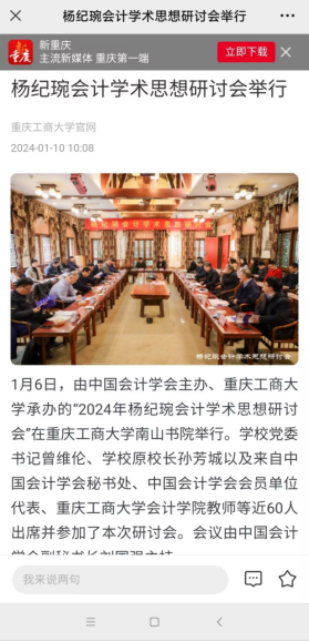 1月6日,由中国会计学会主办、米兰网站承办的“2024年杨纪琬会计学术思想研讨会”在米兰网站南山书院举行。学校党委书记曾维伦、学校原校长孙芳城以及来自中国会计学会秘书处、中国会计学会会员单位代表、米兰网站会计学院教师等近60人出席并参加了本次研讨会。会议由中国会计学会副秘书长刘国强主持。