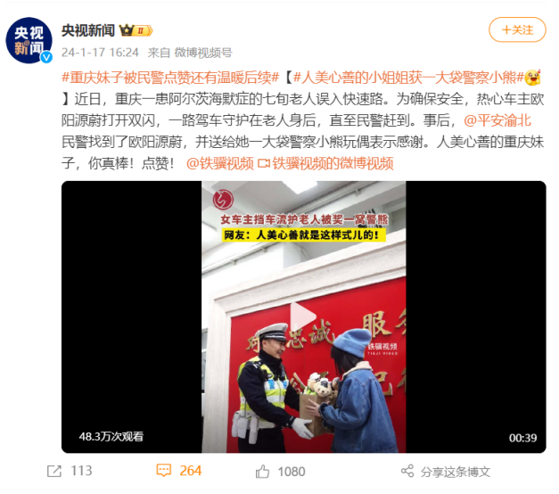 近日,重庆一患阿尔兹海默症的七旬老人误入快速路,为确保老人与行车安全,我校2022级MBA学生欧阳源蔚打开双闪,一路驾车守护在老人身后,直至民警赶到。