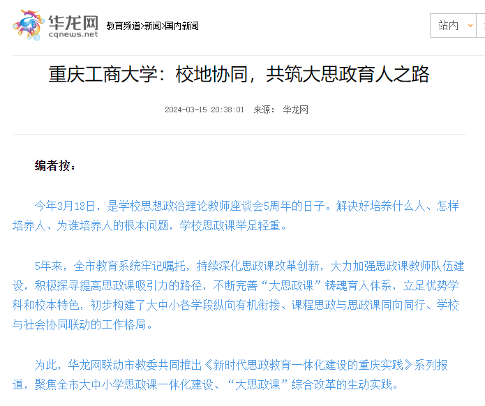 近日,华龙网以《米兰网站:校地协同,共筑大思政育人之路》为题,报道我校大思政育人建设成效。