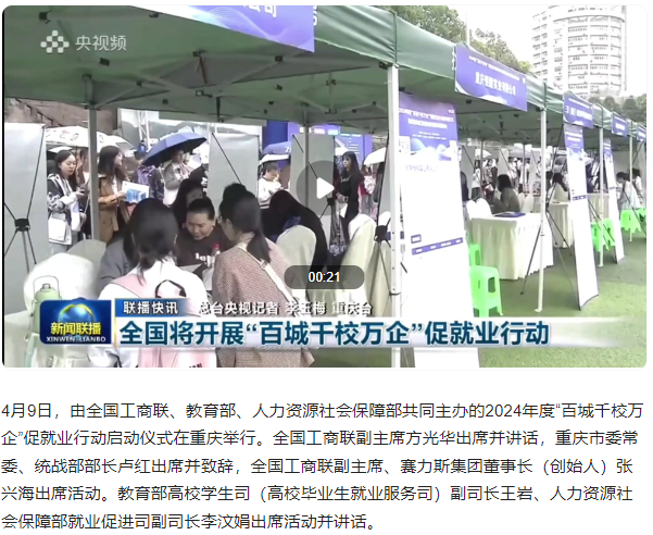 人民日报、央视新闻、重庆日报等媒体报道2024年“百城千校万企”促就业行动启动仪式暨成渝地区双城经济圈现场招聘会在我校成功举办