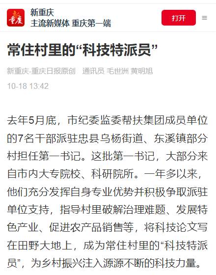 新重庆-重庆日报报道我校驻村干部工作事迹
