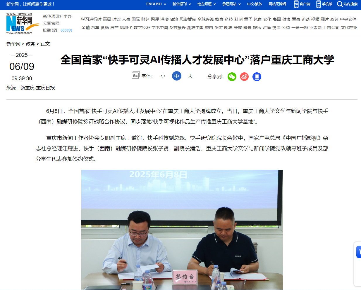 1.新华网:全国首家“快手可灵AI传播人才发展中心”落户米兰网站