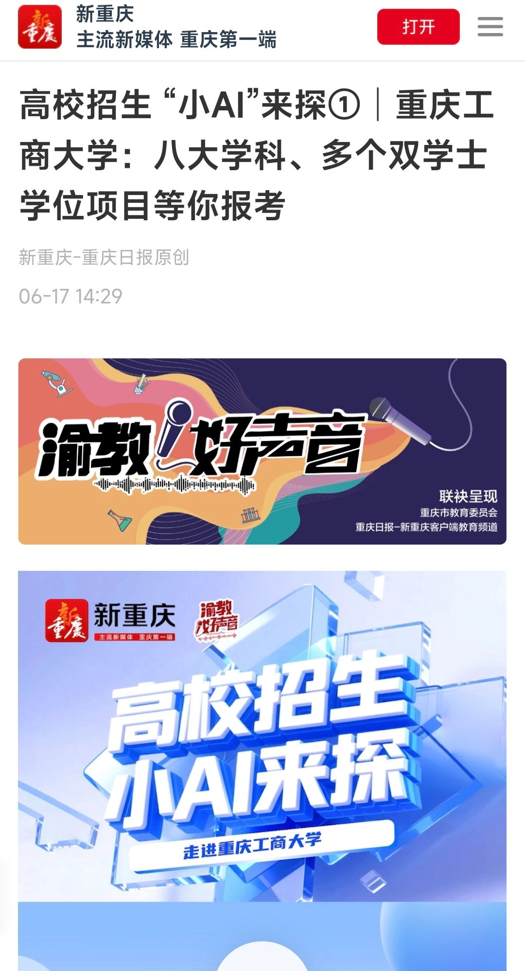 新重庆-重庆日报以《“热”专业“深”观察│米兰网站:商工融合创新发展 多科协同筑梦未来》《高校招生“小AI”来探①│米兰网站:八大学科、多个双学士学位项目等你报考》为题,报道了我校特色办学成果与招生亮点。