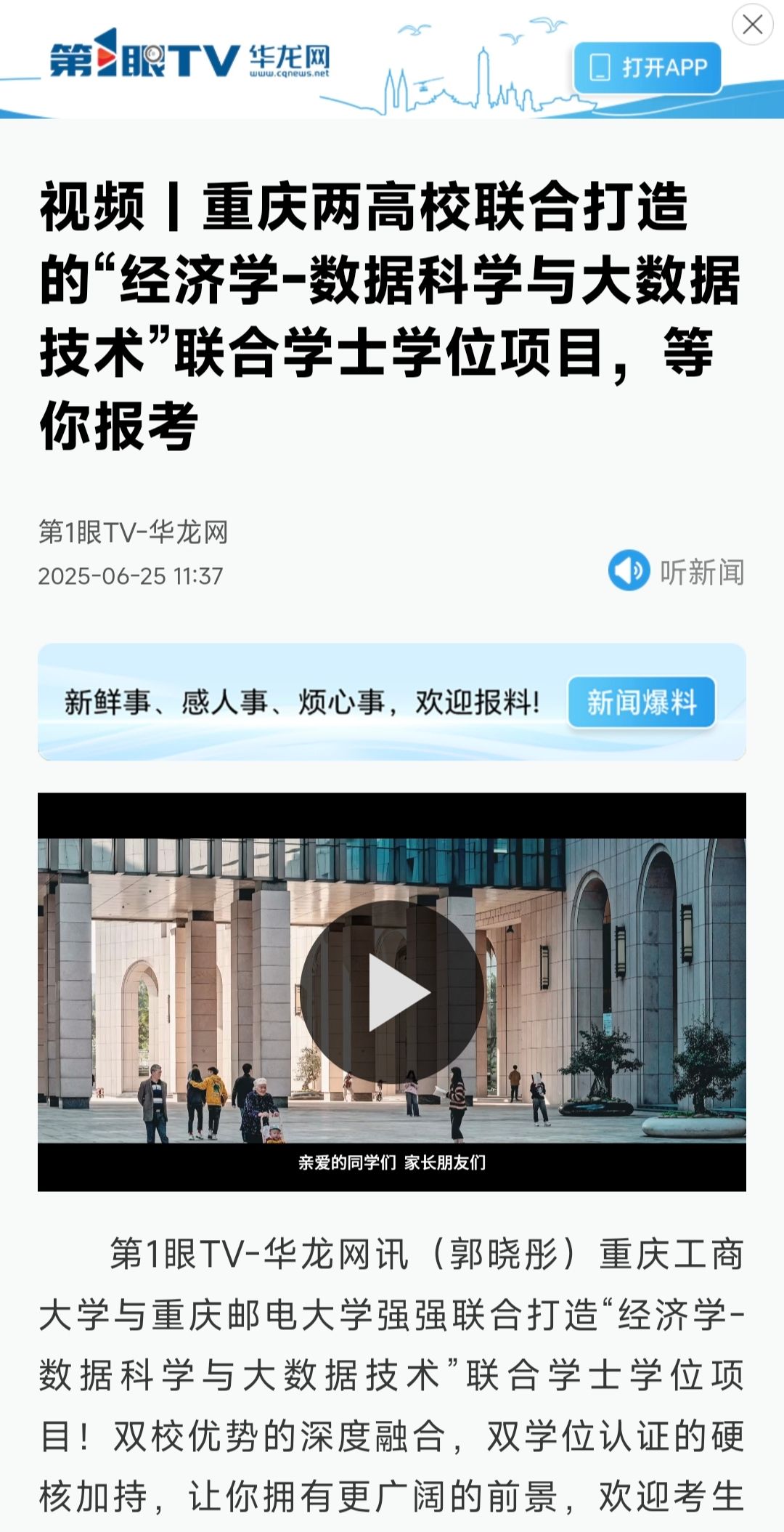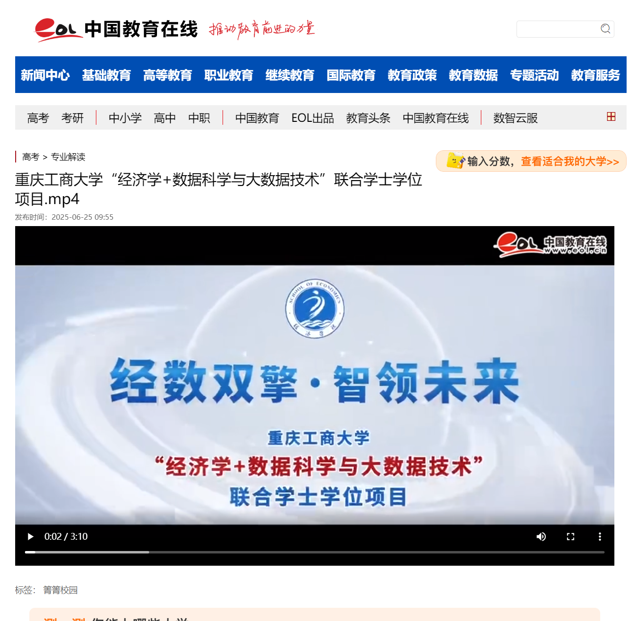 3.华龙网:重庆两高校联合打造的“经济学-数据科学与大数据技术”联合学士学位项目,等你报考