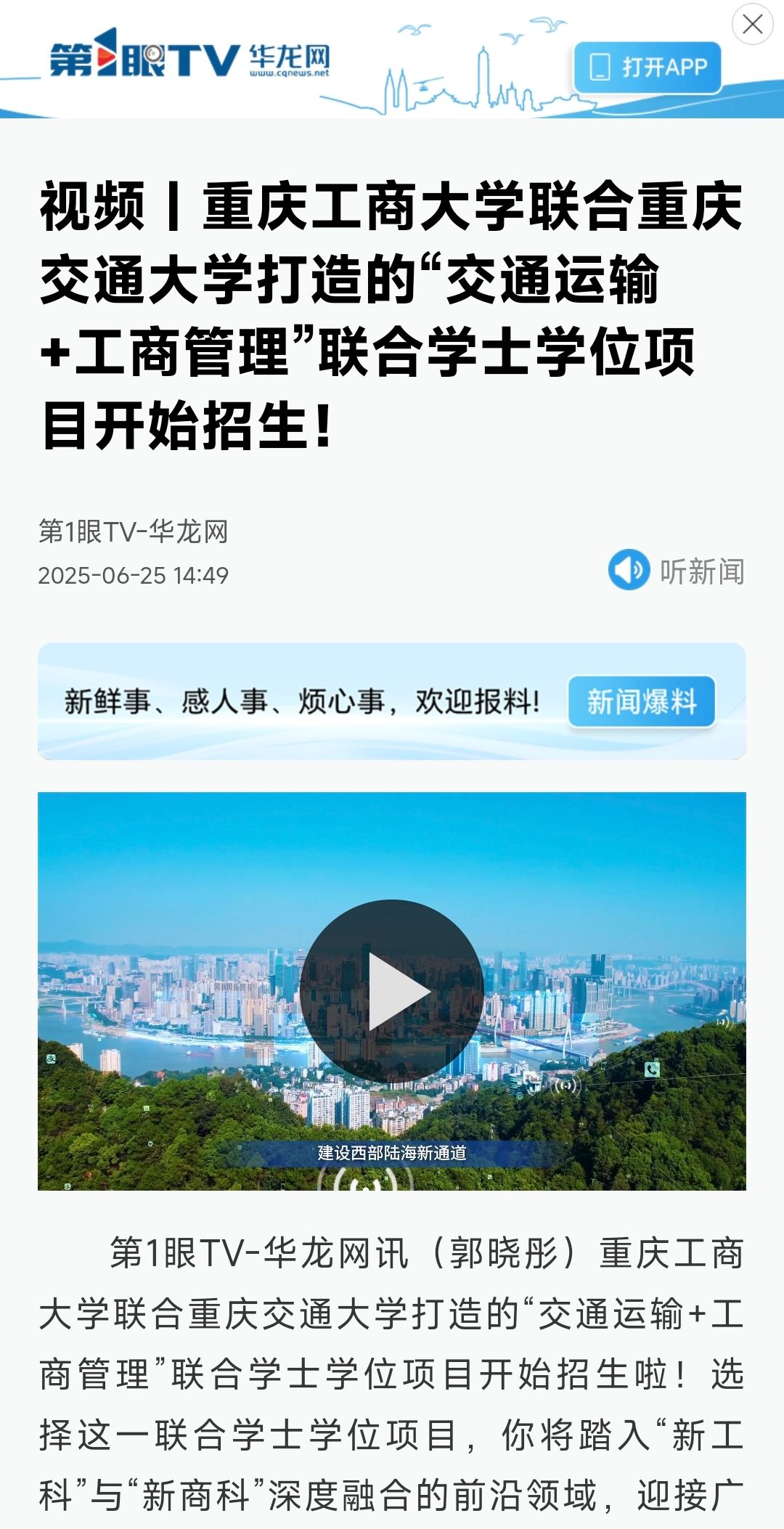 4.华龙网:米兰网站联合重庆交通大学打造的“交通运输+工商管理”联合学士学位项目开始招生!