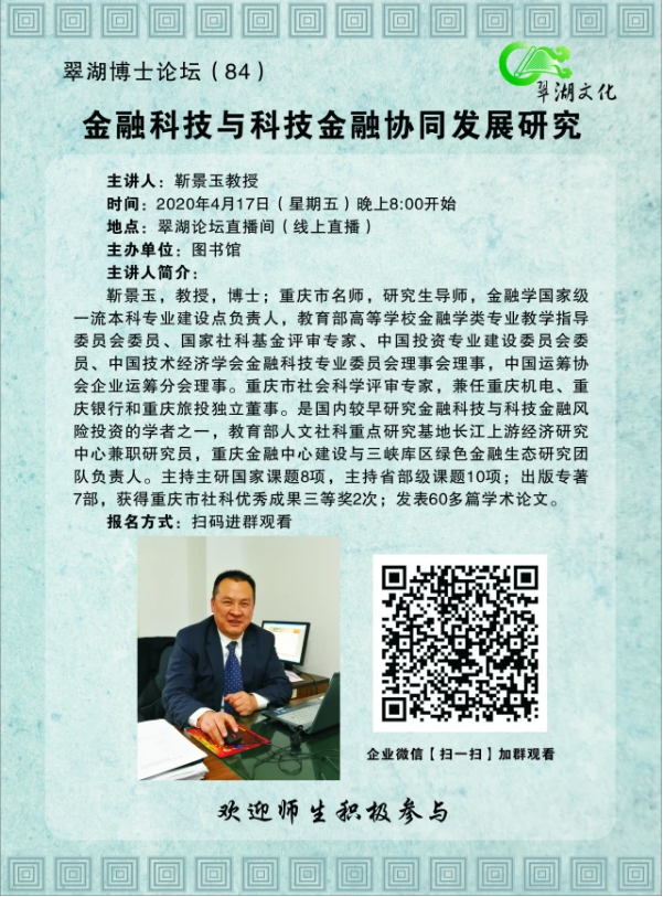 翠湖博士论坛(84)金融科技与科技金融协同发展研究