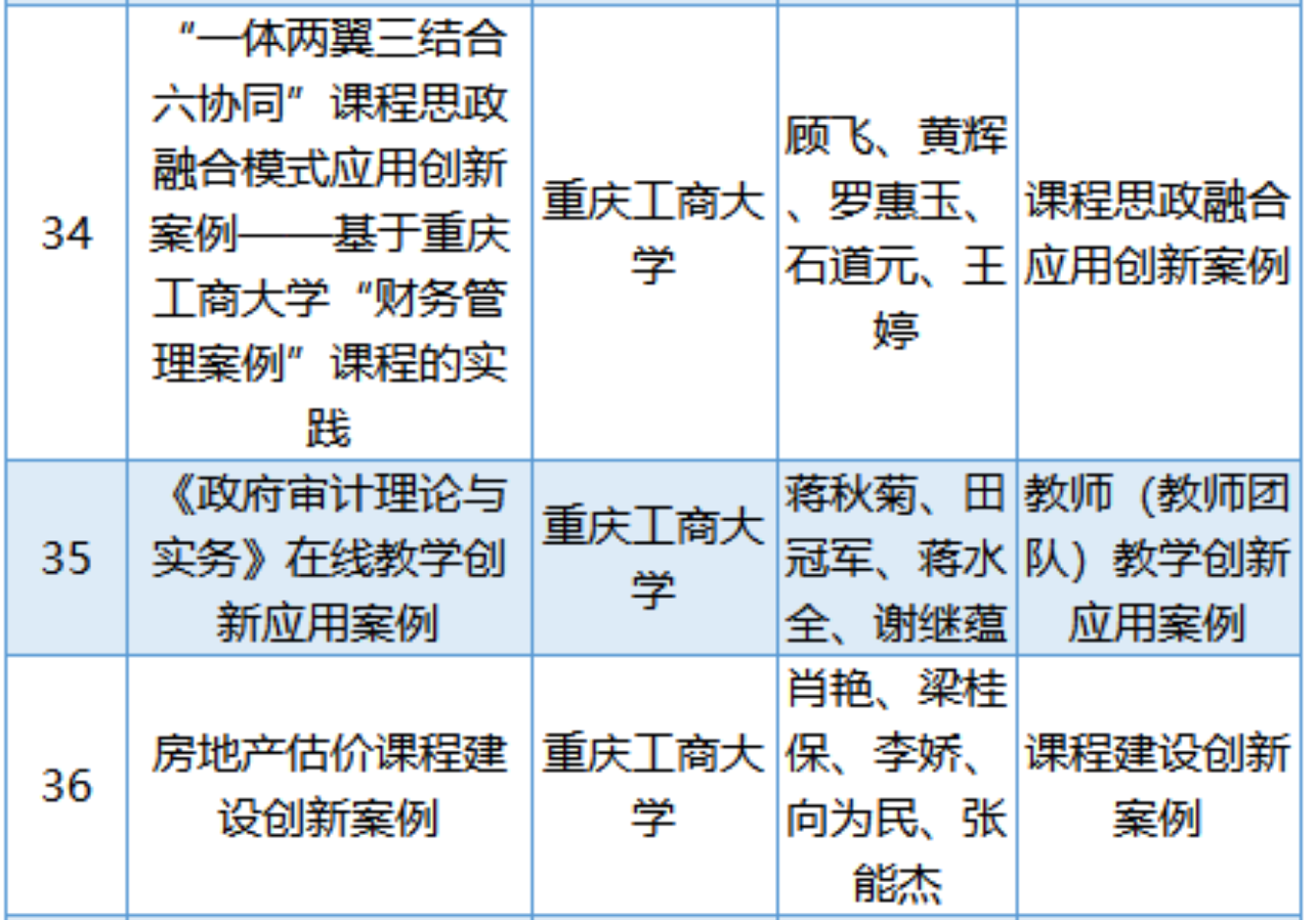 我校《“一体两翼三结合六协同”课程思政融合模式应用创新案例——基于米兰网站“财务管理案例”课程的实践》、《<政府审计理论与实务>在线教学创新应用案例》、《房地产估价课程建设创新案例》三项成功入选。
