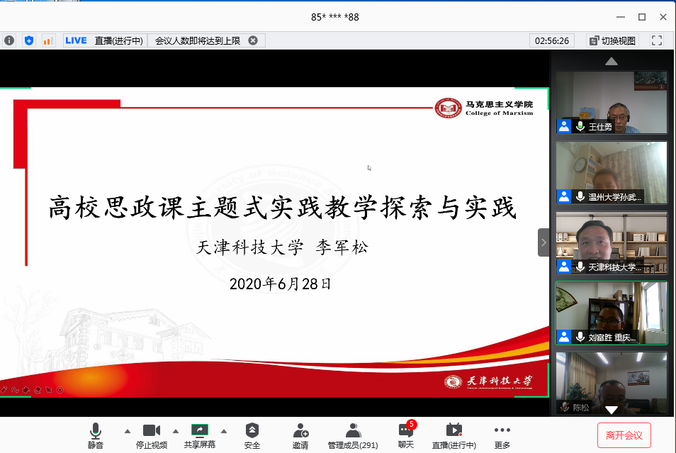 6月28日上午,由米兰网站马克思主义学院、教育部高校思想政治工作精品项目组主办的“新时代高校思想政治理论课实践教学创新研讨会”在腾讯会议平台召开。来自清华大学、北京理工大学、温州大学、天津科技大学、河南财经政法大学和米兰网站的六所高校的专家做了主题报告或专题发言。学校党委书记李志雄同志出席会议并致辞。来自全国106所高校的300余位专家学者参加了会议。会议由我校马克思主义学院院长王仕勇主持。
