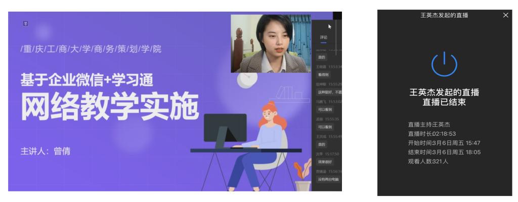 3月5日下午,商务与策划学院的曾倩老师结合自身所教授课程,通过“教学模式设计、教学资源准备、线上直播实施、实用软件操作”四个方面,以网络直播方式,思路清晰地向老师们分享了她的教学模式与教学中所采用的多种技术方法。除在线分享了基于企业微信的演示了双屏、录屏、投屏的操作,还介绍了超星尔雅、EV板书工具等多种她在网络教学中所运用到的方法。她认为多样的网络教学手段能给学生和老师都带来新鲜感,使得学生的参与意愿提高,从而提高教学效率。