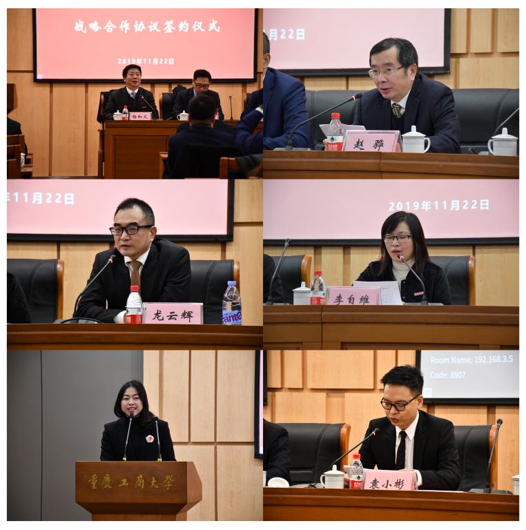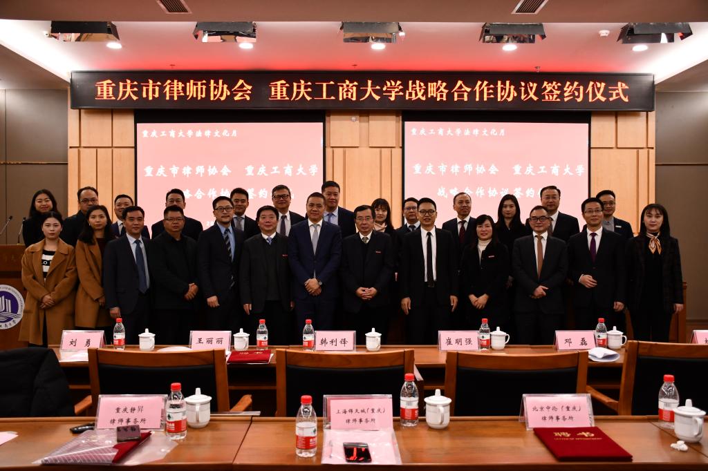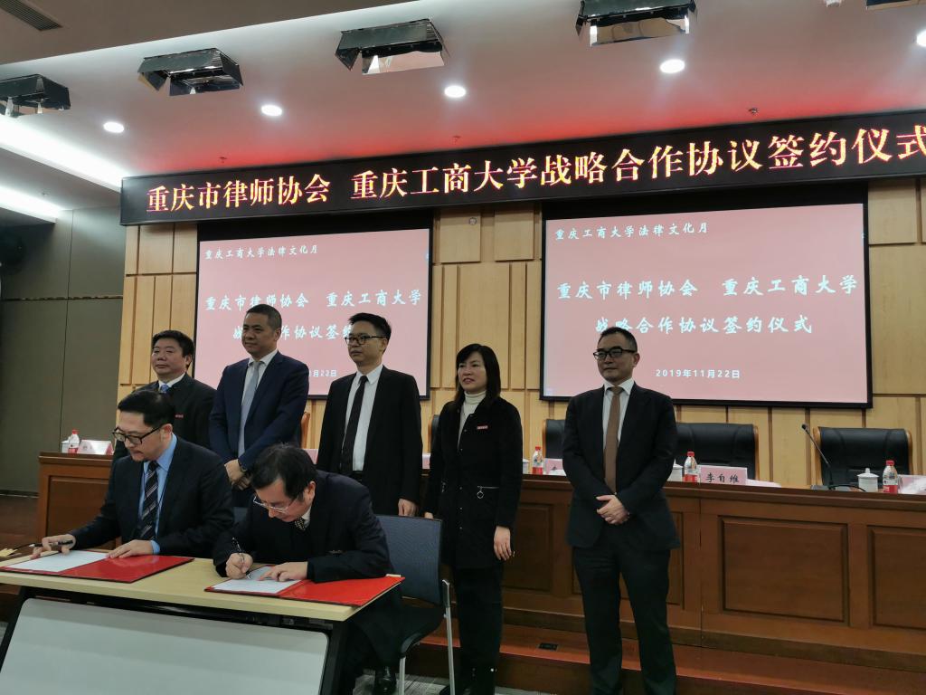会上,赵骅代表学校致辞,他表示,重庆市律师协会近年来为服务全面依法治国战略,推动社会主义法治国家建设,服务国家和重庆经济社会发展作出了重要贡献,非常荣幸能有机会与重庆市律师协会合作。同时,我校法学学科作为市级重点学科,目前拥有法律硕士等3个硕士学位授权点,知识产权专业为重庆市一流专业,这些优势资源都将对提升我校与重庆市律师协会合作质量产生积极的促进作用。他希望以此次战略合作为契机,切实加强理论与实务有机融合,不断增进彼此交流,产出更加丰富的高质量研究成果,努力提升具有财经特色的法学人才培养质量,促进学科建设和办学实力迈上新台阶。随后,赵骅副校长与陈昊副会长代表双方签订《战略合作协议》。