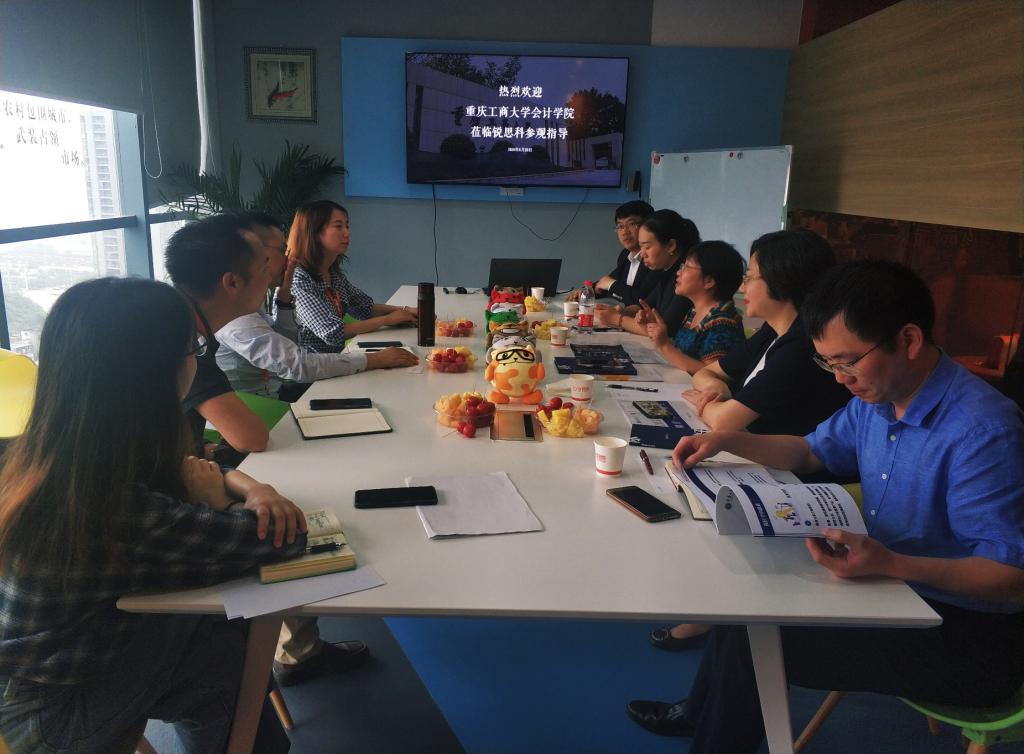 随着产业革命和经济发展方式转型以及我国经济结构调整升级,如何深化教育链、人才链与产业链、创新链的有机衔接,将“学院建到产业、教学进入企业、生产进入课堂”,以新理念、新模式、新内涵培养新商科人才正成为政、行、企、校、研共同关心的时代话题。为更好的汲取多方智慧,协同多方力量,实现校企“同向而行”“同频共振”,6月20日上午,我校会计学院组织由学院分党委书记罗惠玉、学院工会主席、就业联络员刘斌、会计系副主任幸素园、财务管理系主任杜迎新、审计系主任和审计硕士(MAud)项目负责人蒋水全组成的调研小组,前往锐思科集团总部开展实地调研并洽谈产学研合作事宜。