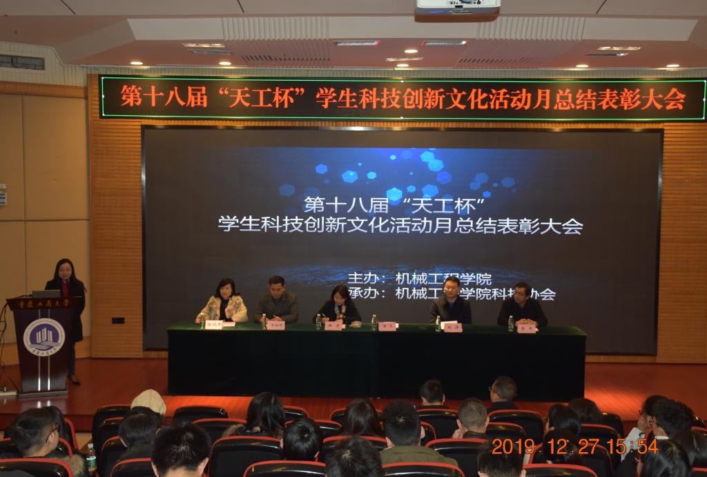 12月27日,机械工程学院第十八届“天工杯”学生科技创新文化活动月总结表彰大会在7200报告厅举行。学生处副处长潘焱,学院全体领导,活动赛事指导老师,学院部分专职教师和辅导员参加了表彰大会,会议由学院党总支副书记张晓琴主持。