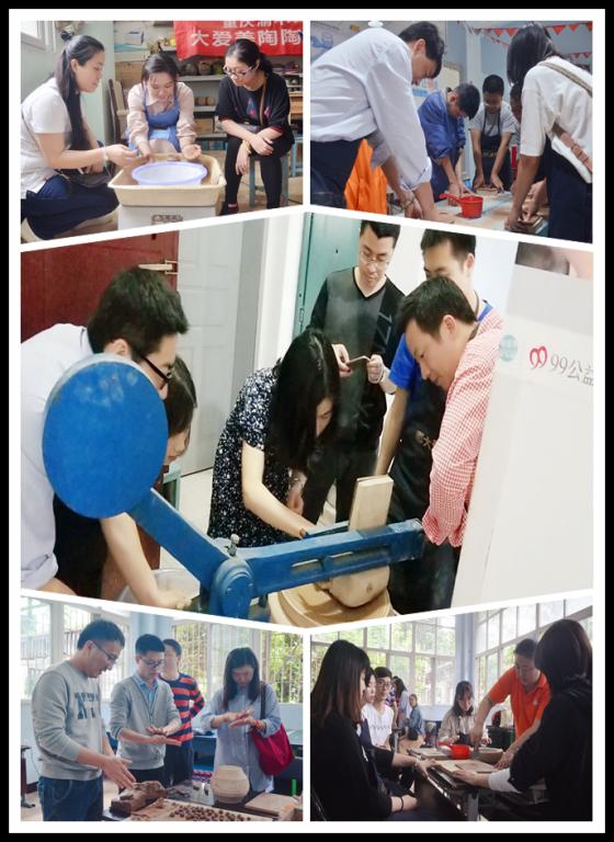 紧接着,指导老师对学员进行了分组,具体包括压模体验组、拉坯体验组、模具体验组,全体学员与心智障碍朋友们一道开启了本次爱心美陶之旅的序幕。